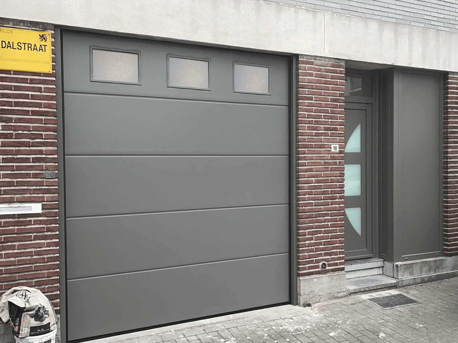 Grijze sectionaaldeur met ramen – Modern en functioneel