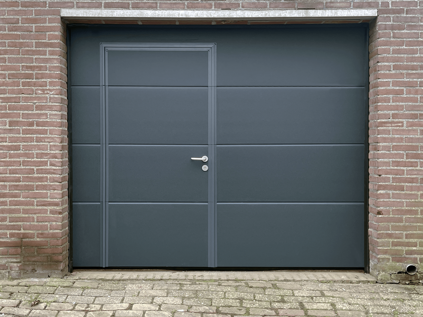 Deze slimme SECTIONALL® Garagedeuren-Zuid is uitgerust met een geïntegreerde loopdeur voor extra gebruiksgemak. Ideaal voor wie vaak in en uit de garage moet zonder telkens de volledige deur te openen.