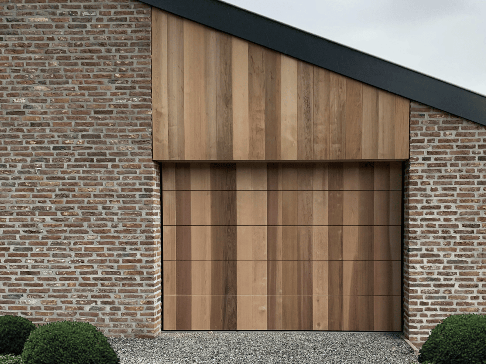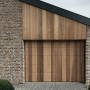 Deze verticale houten sectionaaldeur straalt exclusiviteit uit en past perfect bij woningen met een natuurlijke uitstraling.