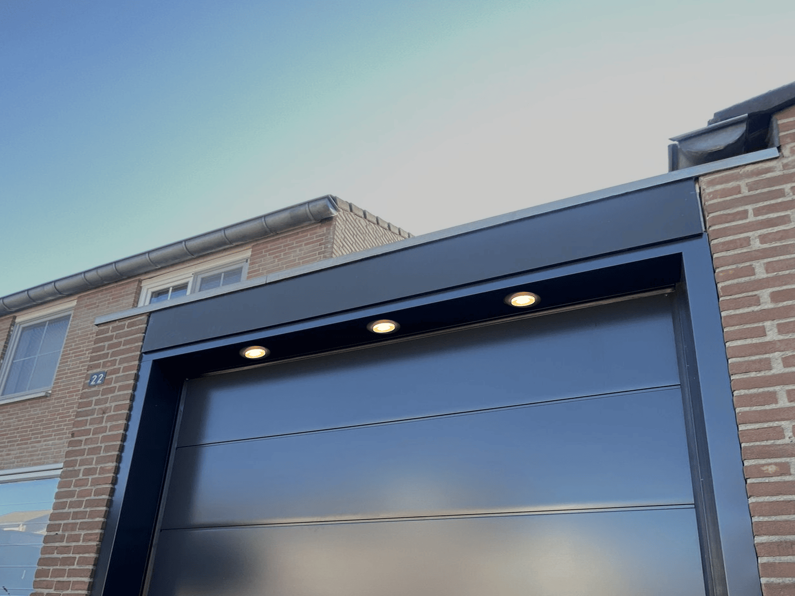 Deze high-end SECTIONALL® Garagedeuren-Zuid met ingebouwde LED-verlichting zorgt voor een moderne en luxe uitstraling. De verlichting verhoogt niet alleen de zichtbaarheid in het donker, maar draagt ook bij aan de veiligheid en sfeer rondom de woning.